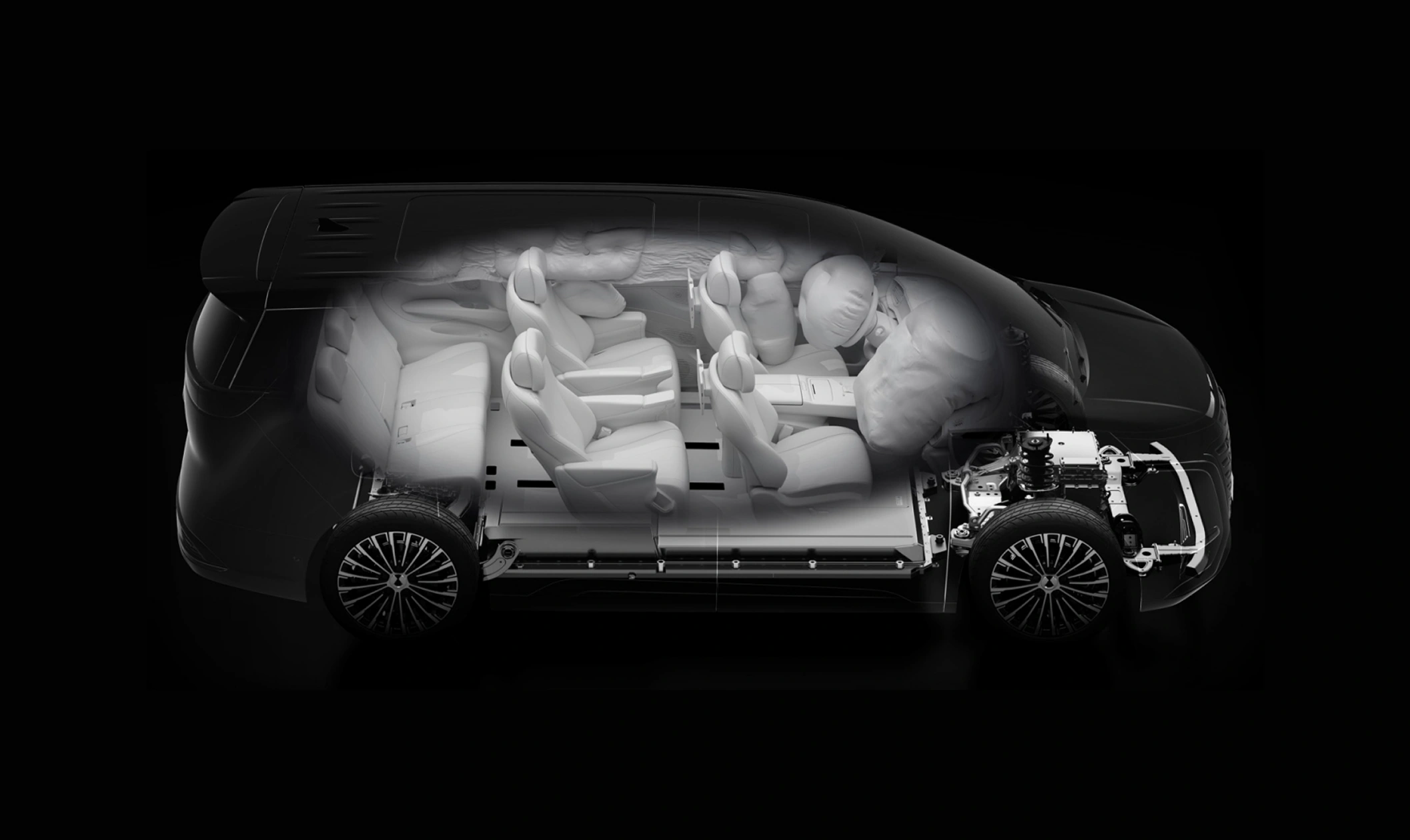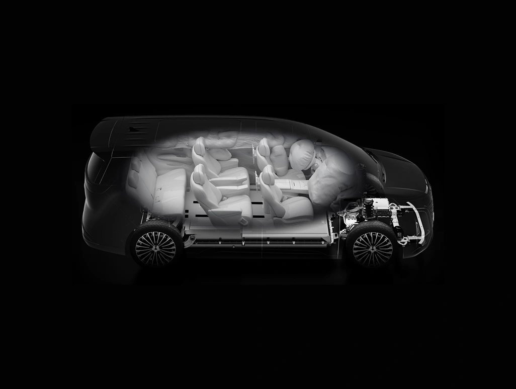 Equipped with airbags in the front, middle and rear seat rows, including side curtain airbags spanning all three rows and a central airbag, to provide all-round protection for all passengers..